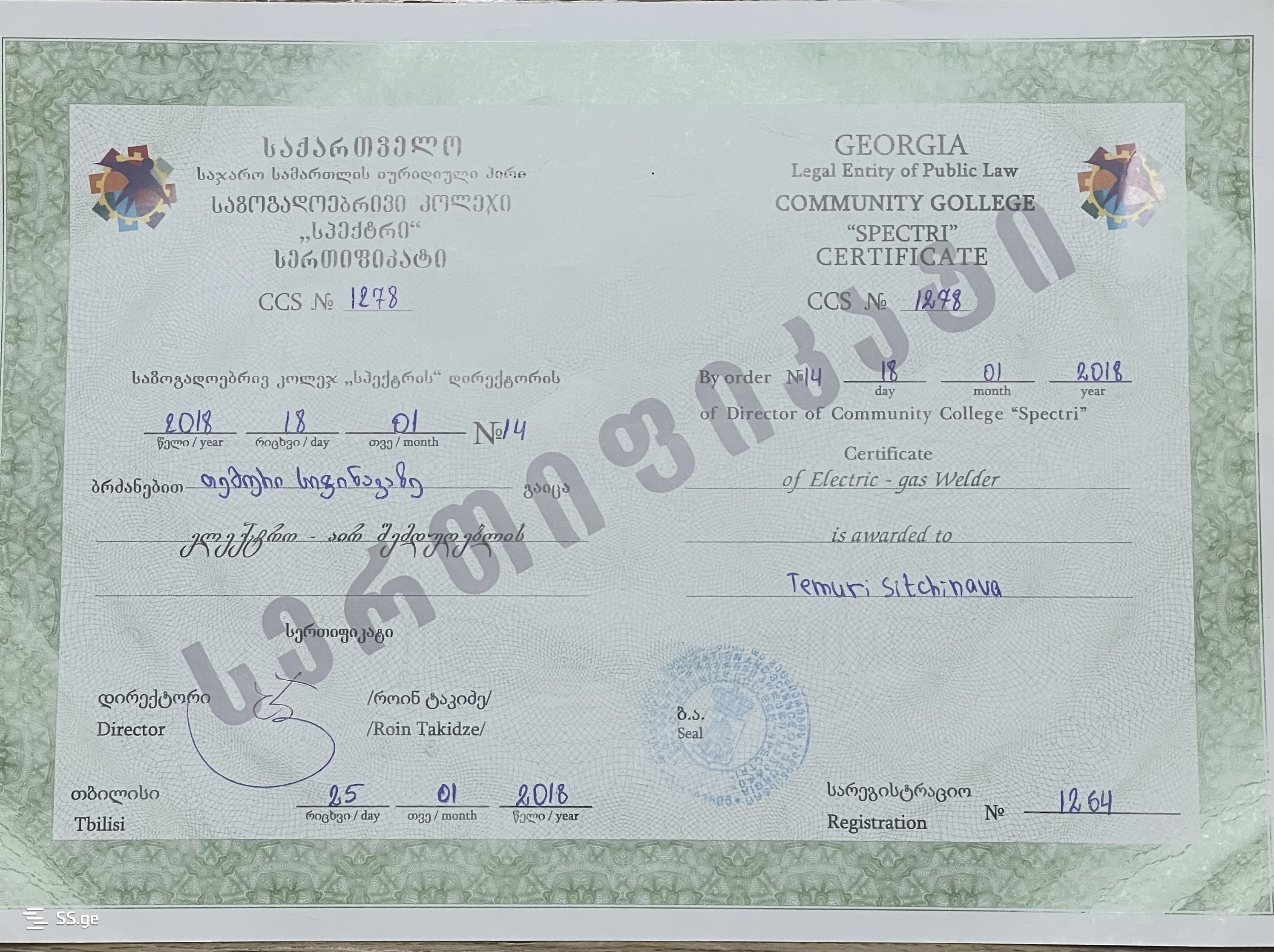 ვარ პროფესიონალი სერტიფიცირებული შემდუღებელი.
