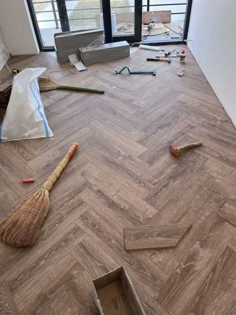 პარკეტის, ლამინატის, კორპისა და ვინილის იატაკის დაგება.