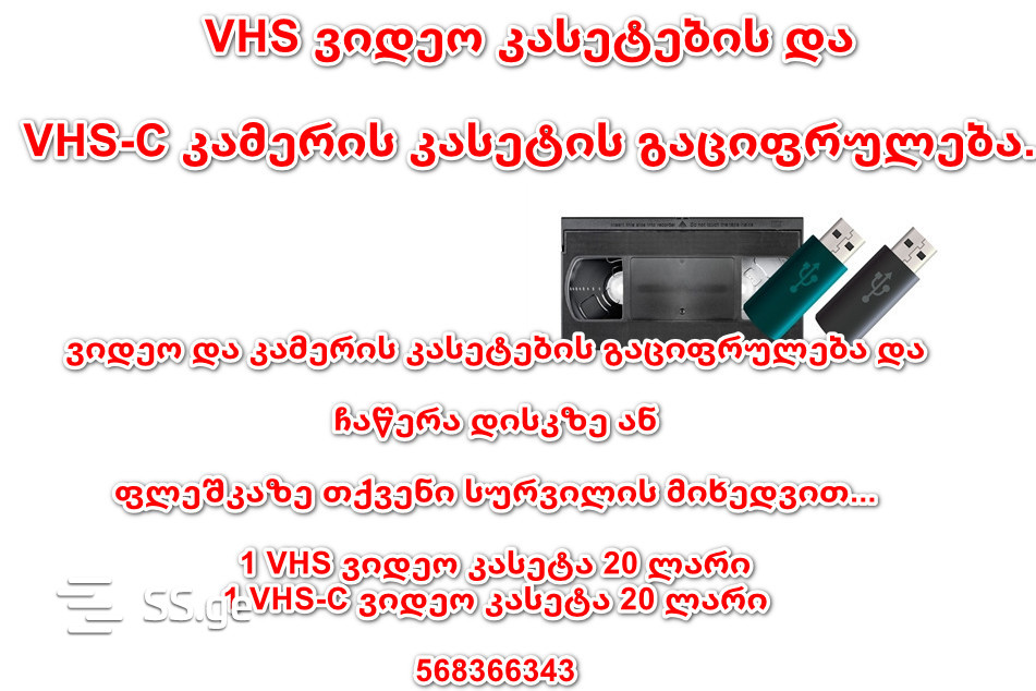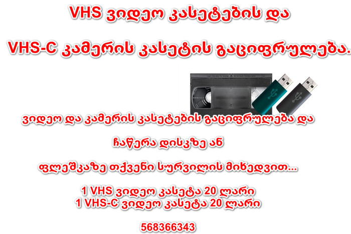 VHS ვიდეო კასეტების და VHS-C კამერის კასეტის გაციფრულება;