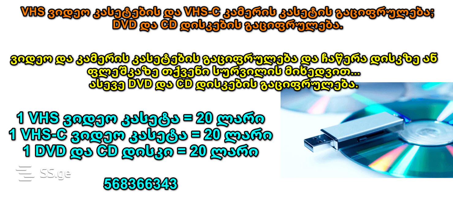 ვიდეო და კამერის კასეტების გაციფრულება და ჩაწერა დისკზე ან