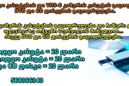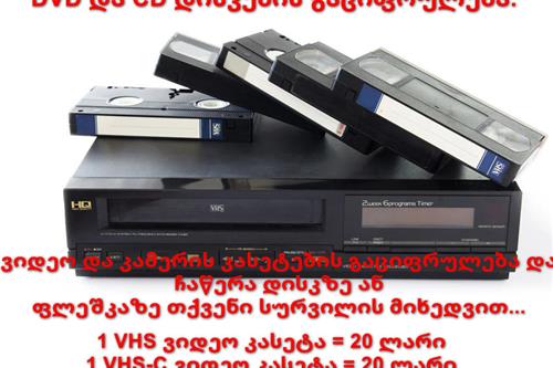 ვიდეო და კამერის კასეტების გაციფრულება და ჩაწერა დისკზე ან