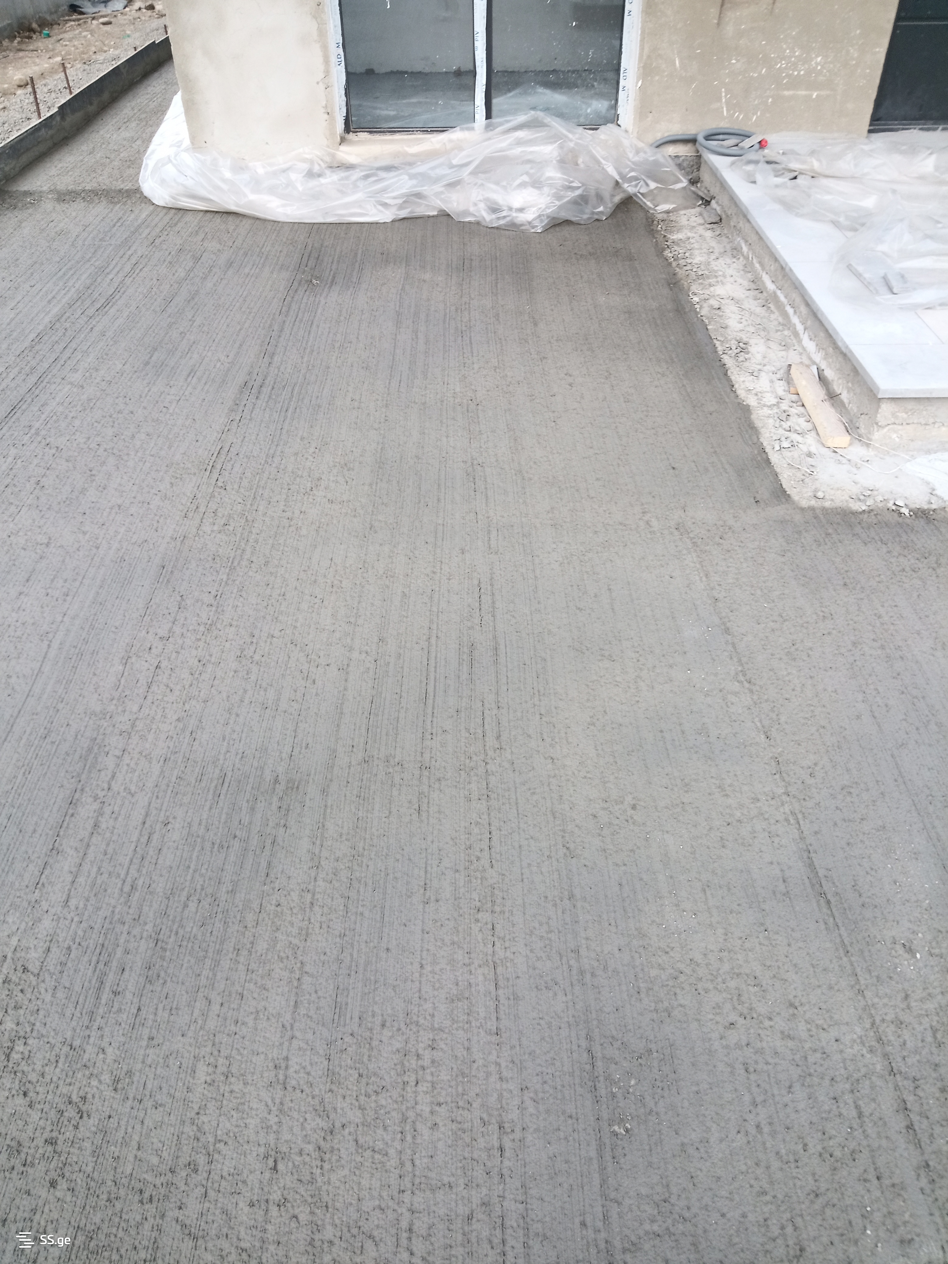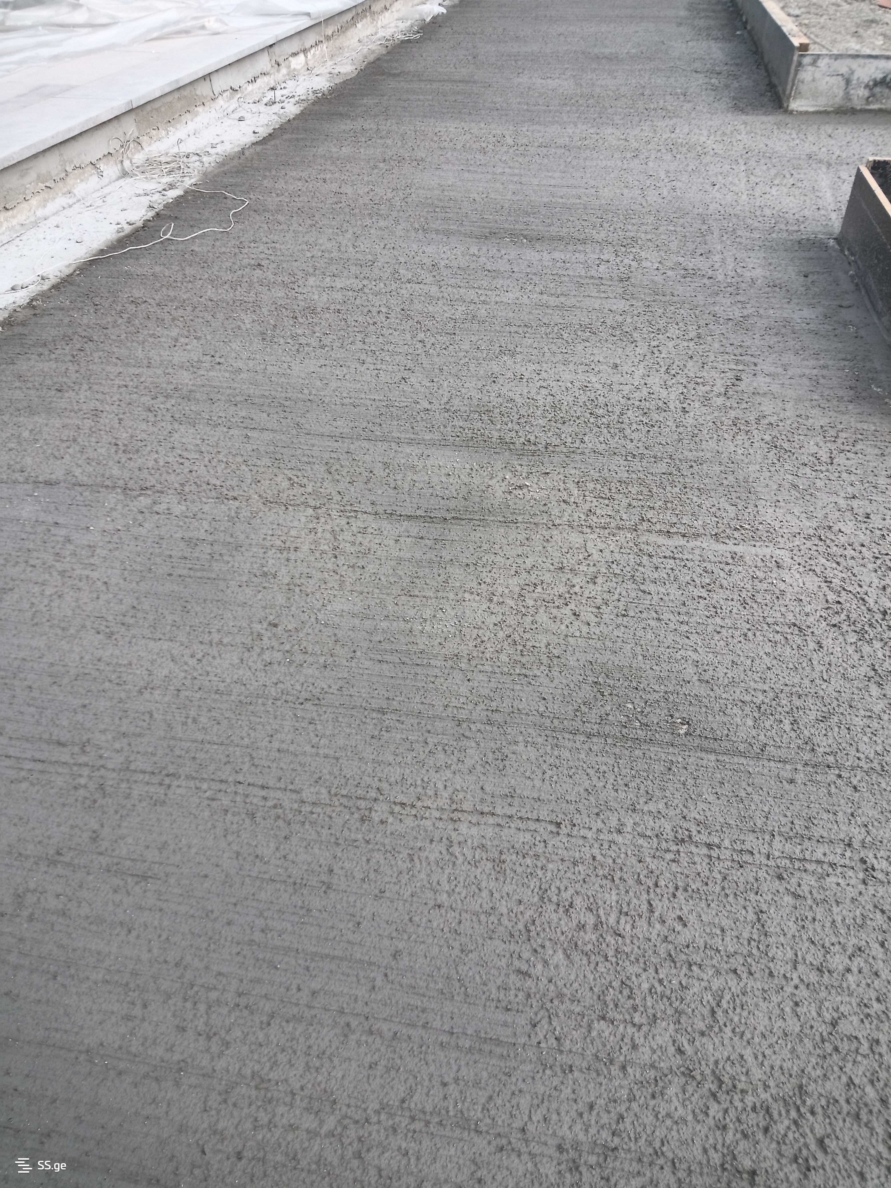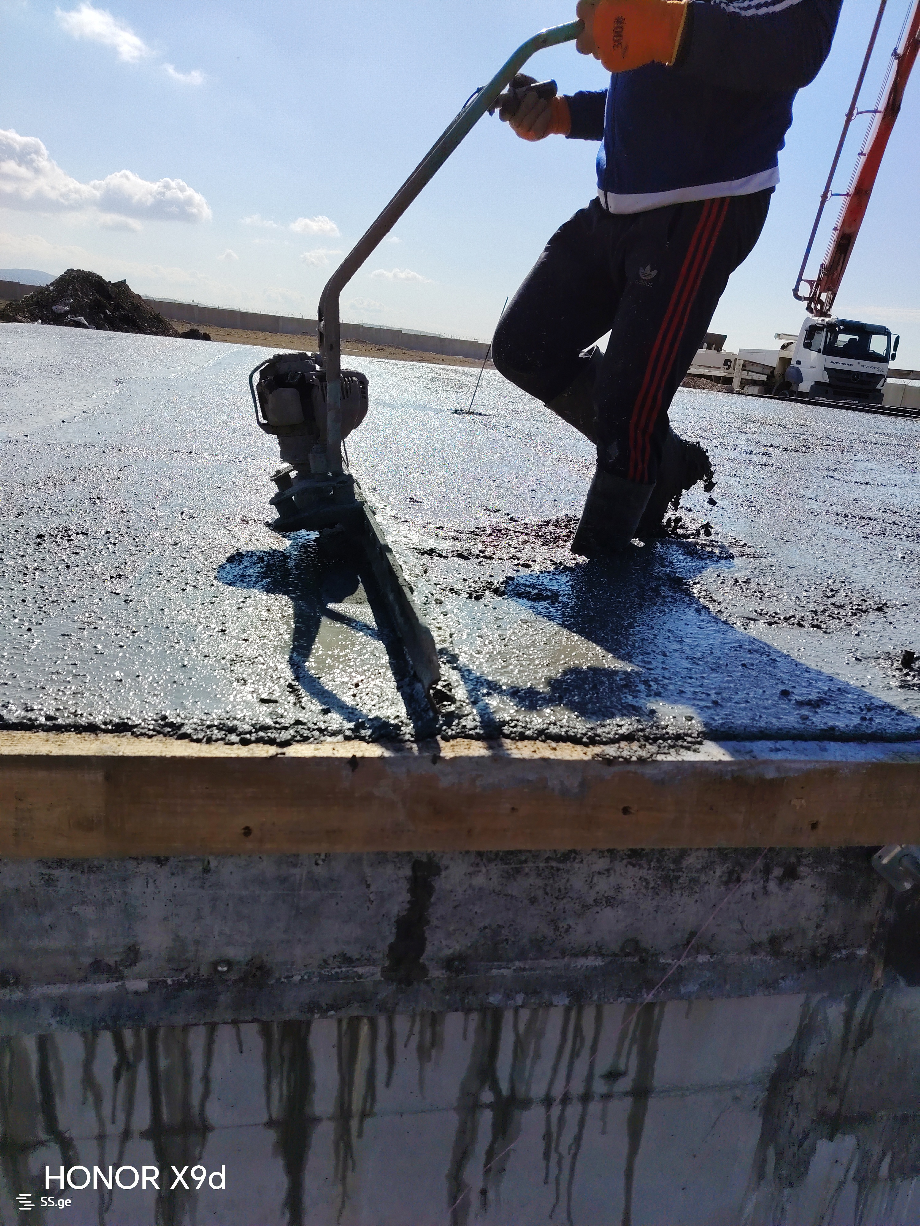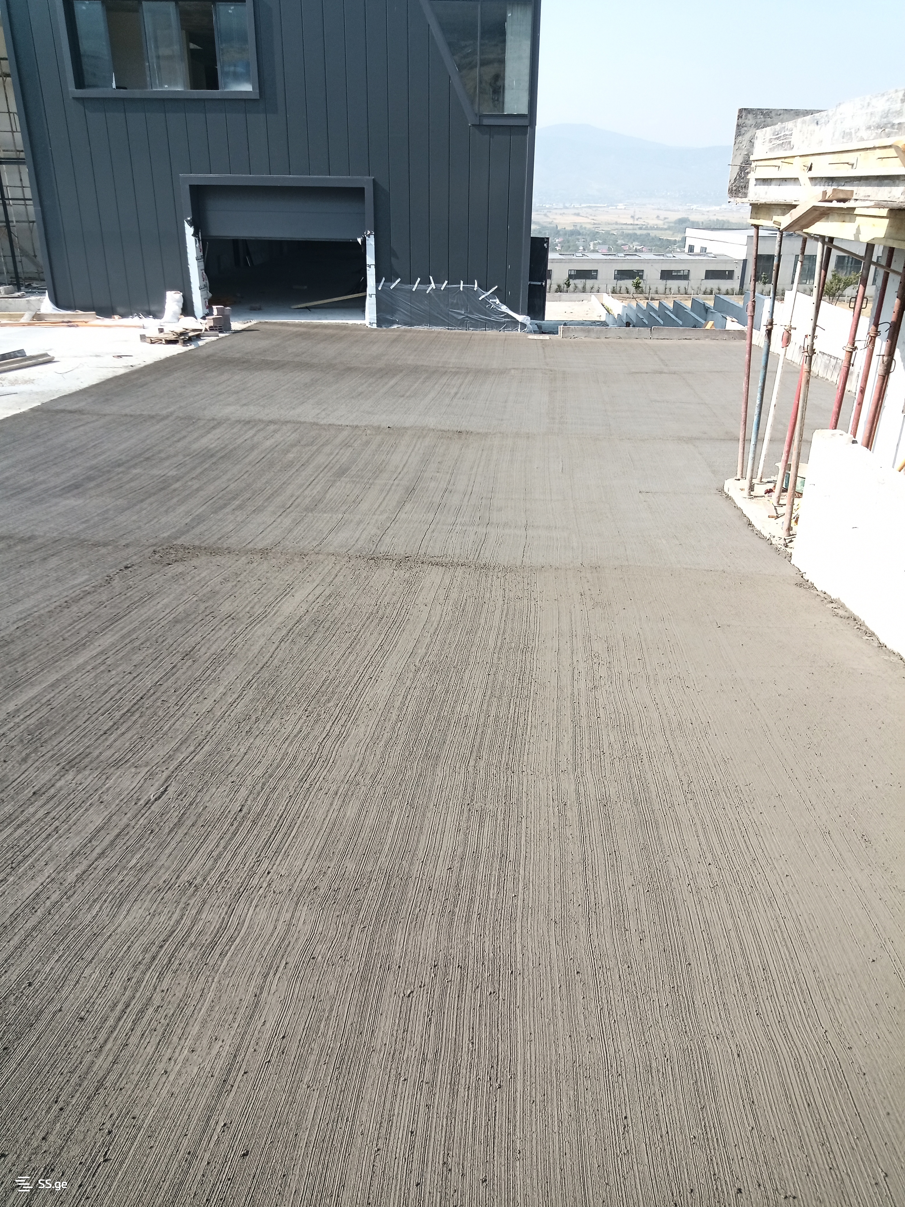 ბეტონის ფენის დაგება და სპეციალური ტექნიკით დამუშავება