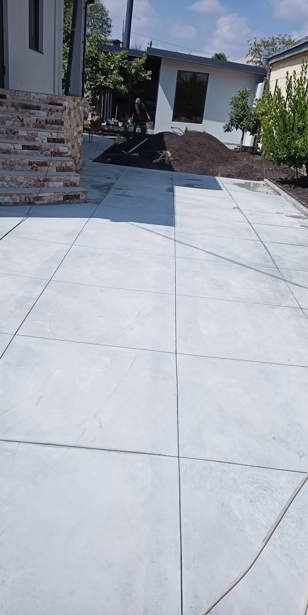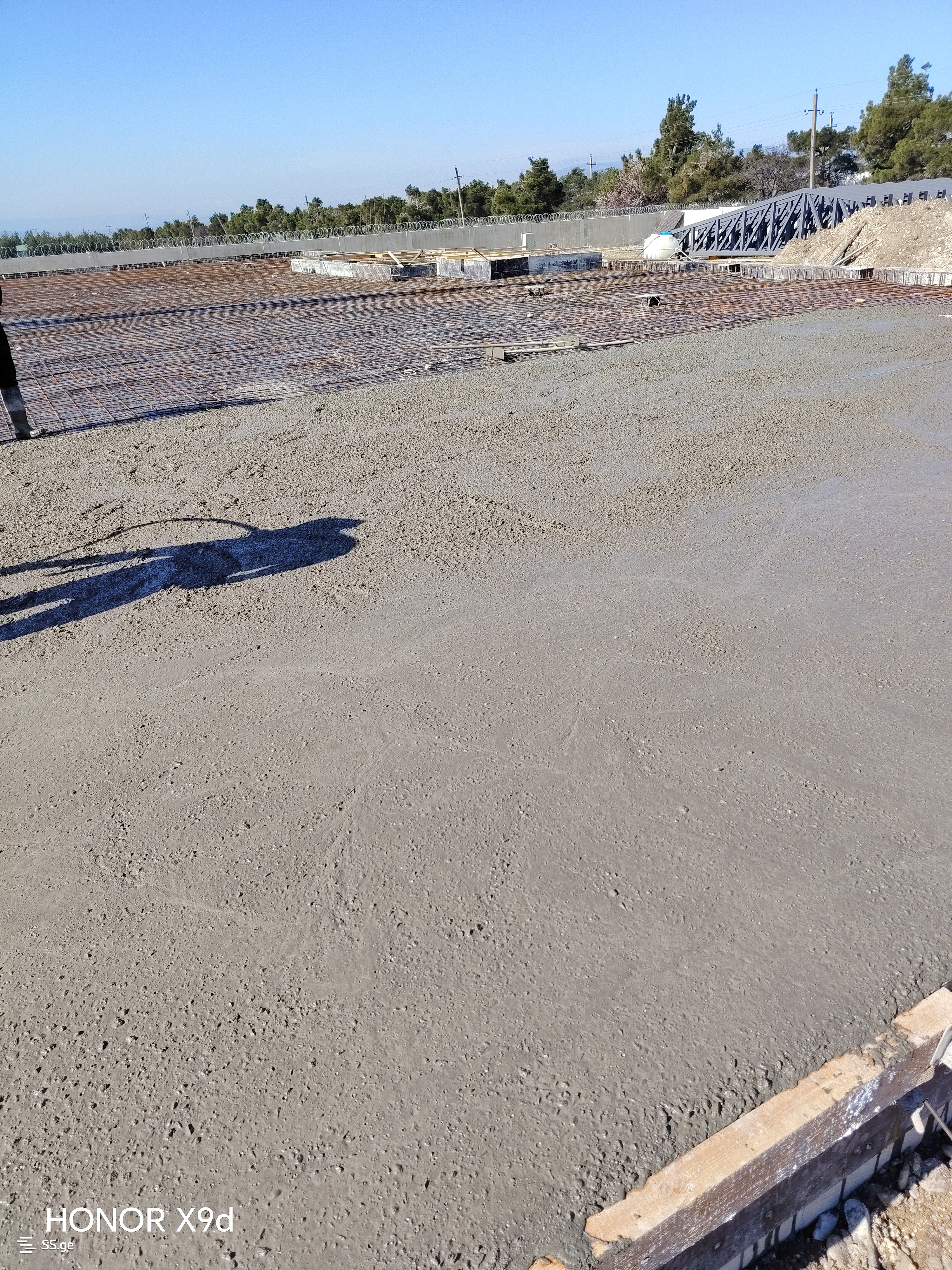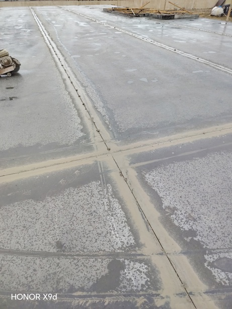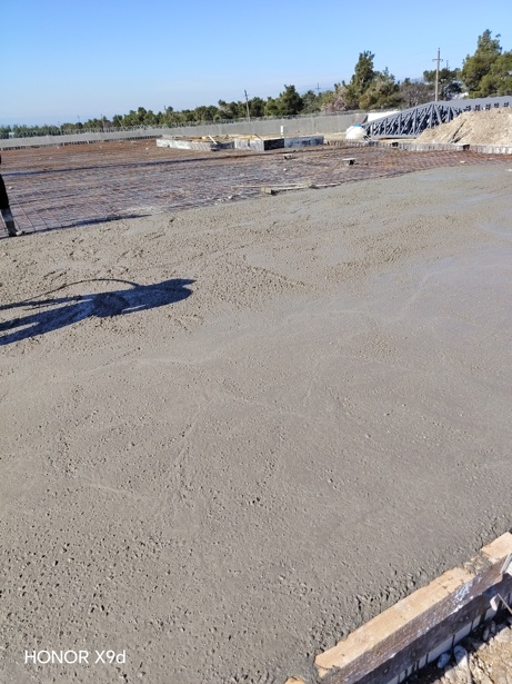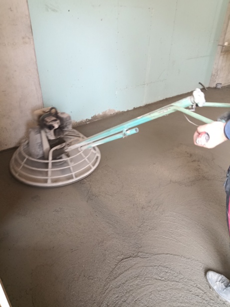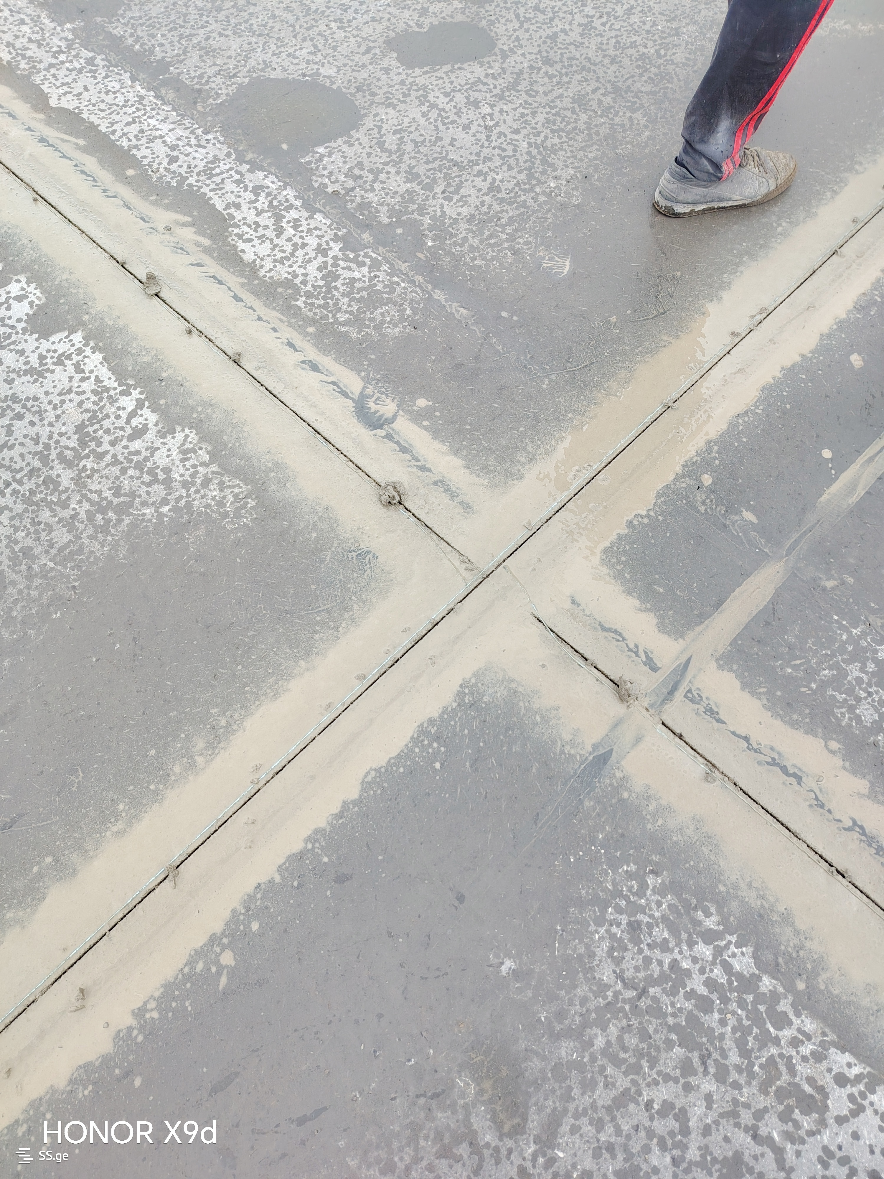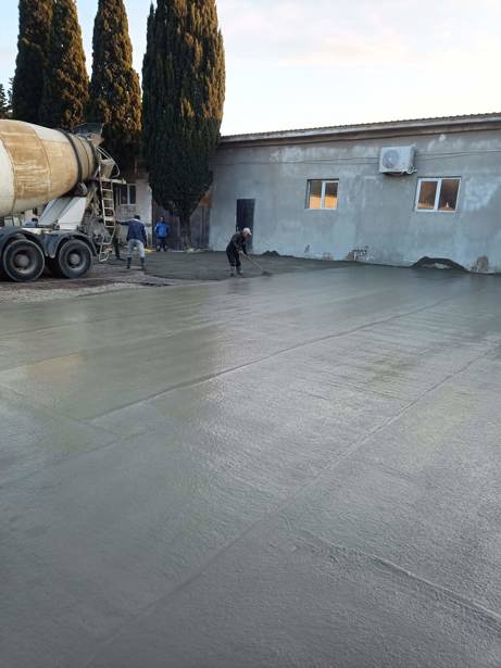 ბეტონის ფენის დაგება და სპეციალური ტექნიკით დამუშავება