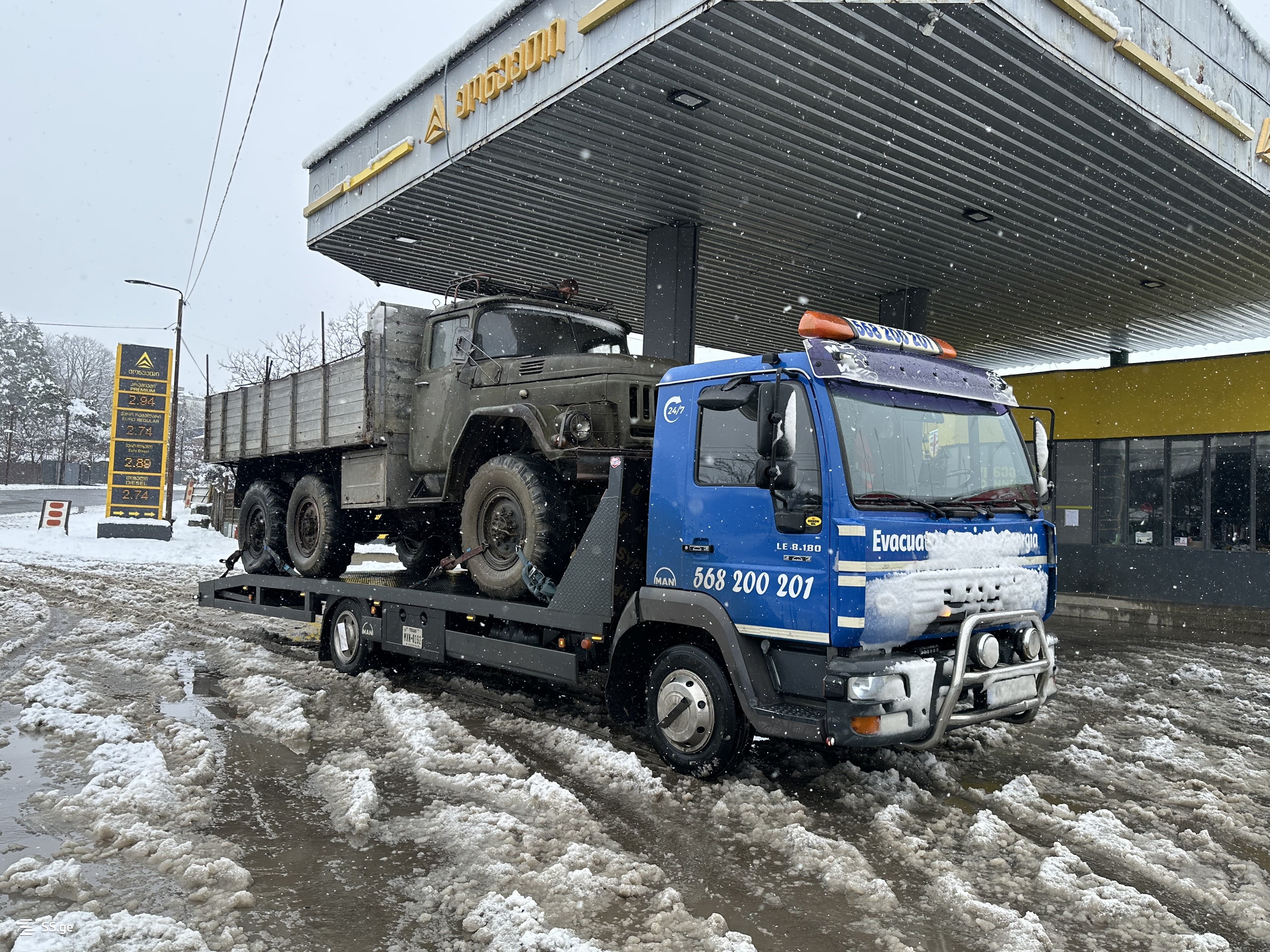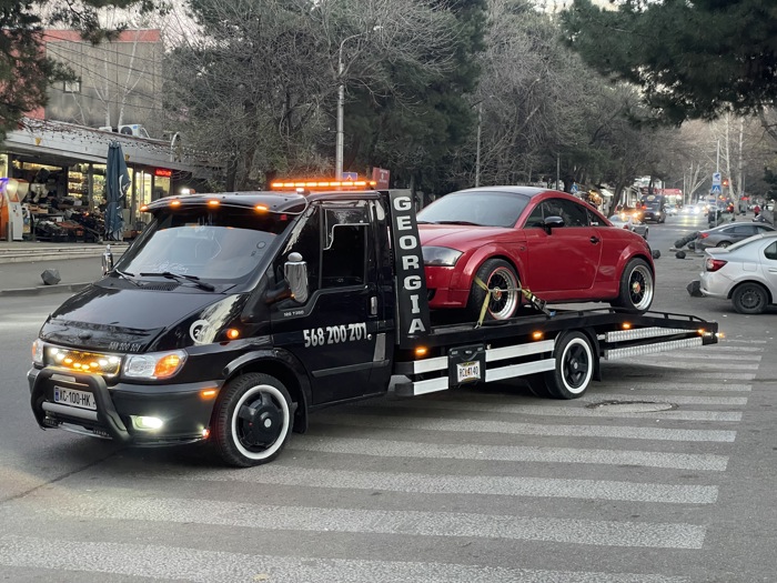 ავტომობილის გადაყვანა მითითებულ მისამართზე სპეციალური ტექნიკით