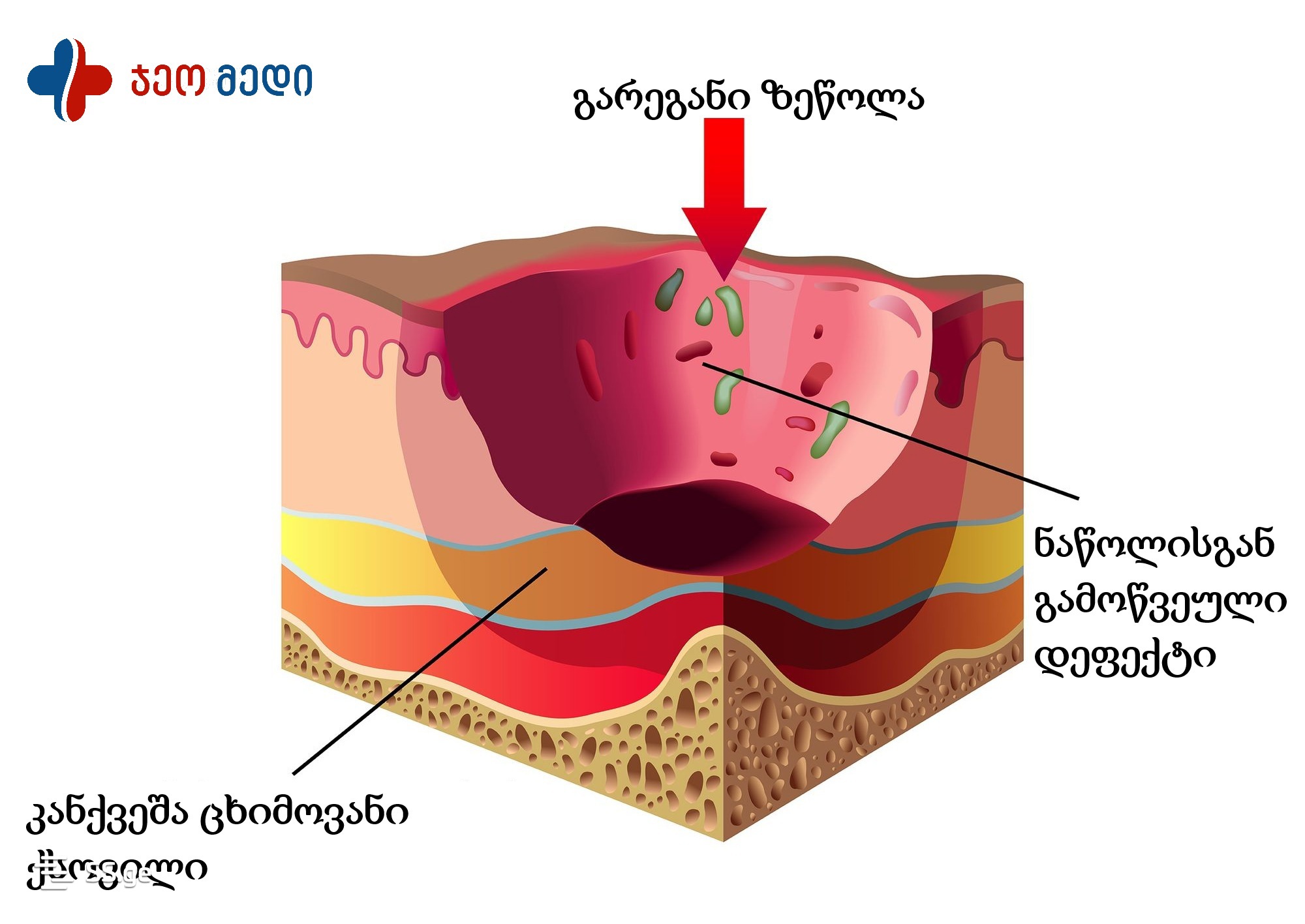 • საჭიროების შემთხვევაში – დაზიანებული ქსოვილის მოშორებას