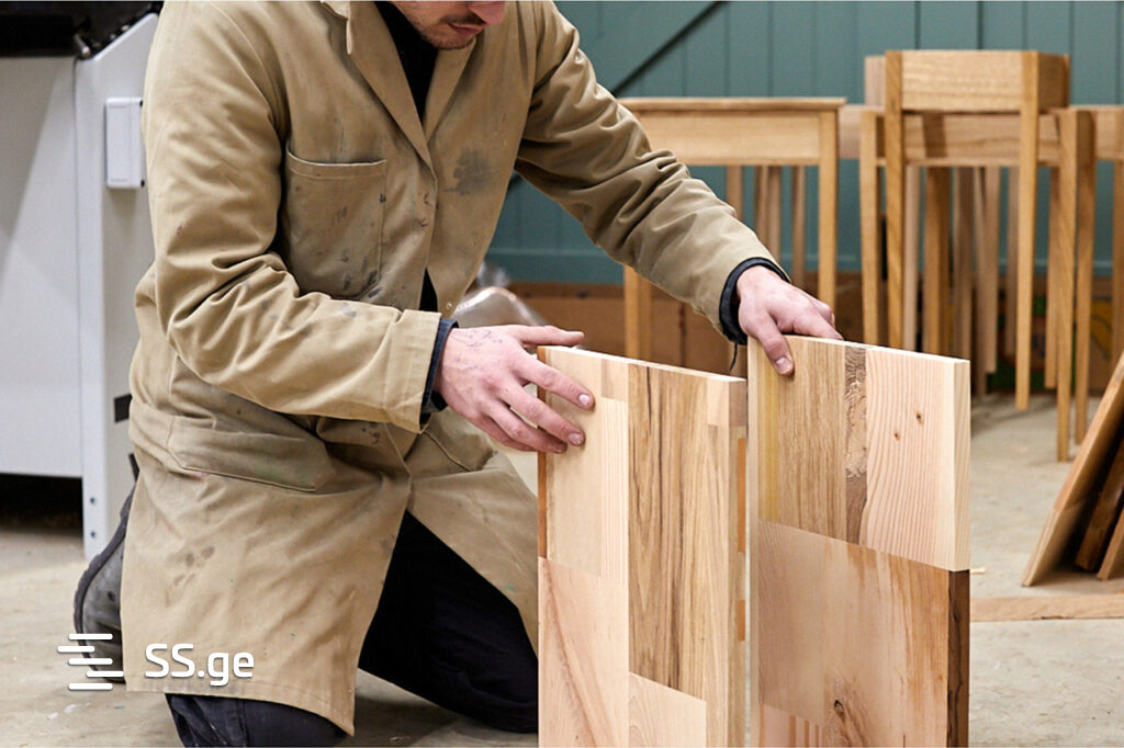 ხის შიდა კიიბეებს, ხვეულ მოაჯირს, კარ ფანჯარას, ავეჯის დამზადება